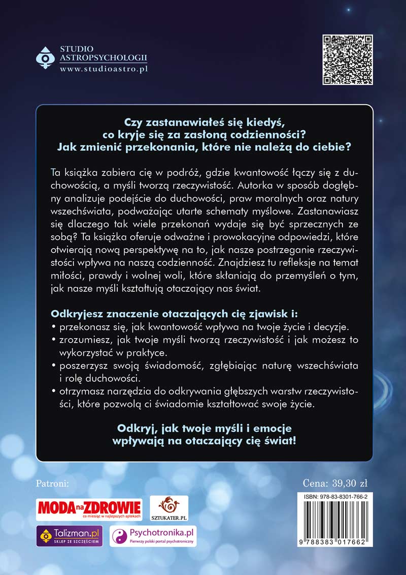 Teraz nadszedł czas, byś wziął sprawy w swoje ręce i odkrył, jak metafizyka, świadomość kwantowa oraz duchowość mogą zmienić twoje życie. Ta książka to klucz do zrozumienia, jak podświadomość wpływa na twoje decyzje i jak możesz świadomie kreować swoją przyszłość. Nie czekaj! Zamów swój egzemplarz już teraz i poznaj tajemnice nadświadomości, bilokacji i przepowiadania przyszłości. Otwórz się na nowe możliwości i zacznij kreować własną rzeczywistość!