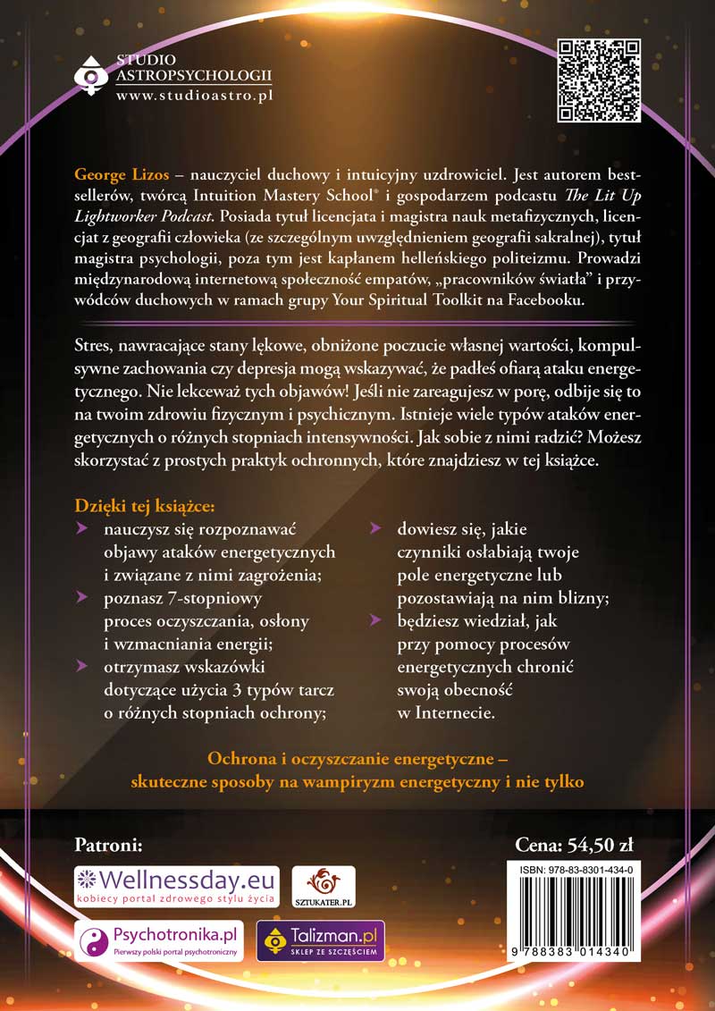 W postaci tej książki otrzymałeś praktyczny poradnik traktujący o oczyszczaniu energetycznym, ochronie przed wampiryzmem energetycznym i odcinaniu sznurów energetycznych. Dzięki niemu nauczysz się stawiać czoła różnym negatywnym energiom. Nieważne, czy będzie to internetowy hejt, mobbing w pracy czy zaburzone relacje partnerskie. W ten sposób staniesz się silniejszy i pewniejszy siebie. Odbudujesz poczucie własnej wartości i wzmocnisz samoakceptację. Wreszcie odzyskasz kontrolę nad swoją energią, którą spożytkujesz na cele związane wyłącznie z rozwojem duchowym i osobistym. Zyska na tym zarówno twoje zdrowie psychiczne, jak i fizyczne.